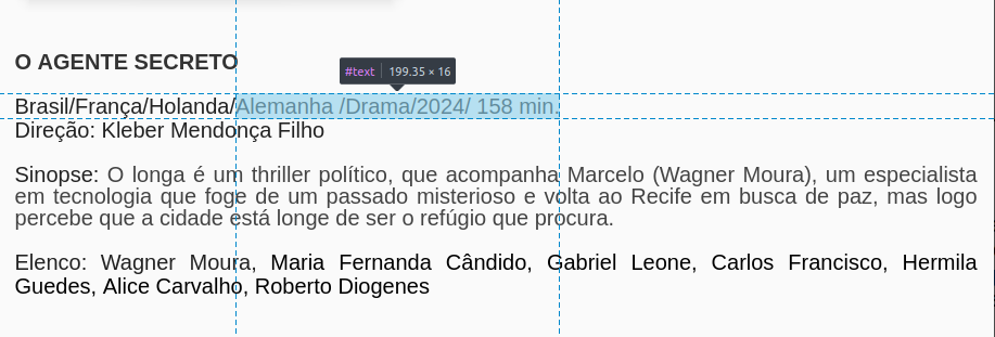 "general_info": "Brasil/França/Holanda/Alemanha /Drama/2024/ 158 min.Direção: Kleber Mendonça FilhoBrasil/França/Holanda/Alemanha /Drama/2024/ 158 min.Direção: Kleber Mendonça Filho",